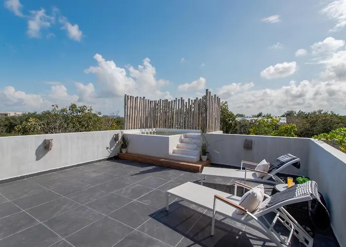 Wenn Sie im Stadtteil Zama von Tulum wohnen möchten, ist das 155 m² große Apartment Penthouse Whit Privare Roof Top Tulum eine gute Wahl. Die Unterkunft liegt in 3 km Entfernung vom Alumbra Mercado Orgánico. Das Apartment bietet den Gästen einen entspannenden Aufenthalt mit einem Jacuzzi.